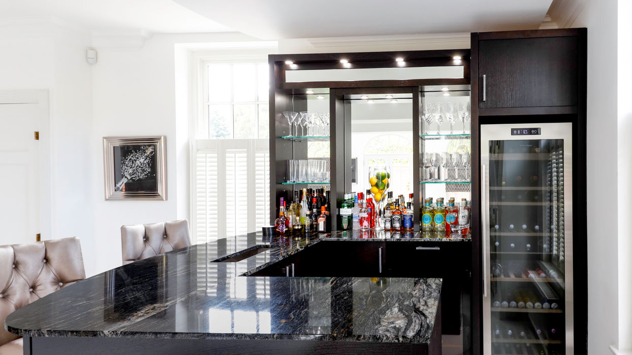 An ultra showstopping bar design, expertly crafted in our Harrogate workshop. Featuring stained black veneer paired with a striking illuminated granite slab, this piece is the definition of bold luxury. A timeless design that will always impress.